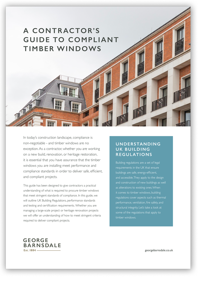 The free guide every contractor needs before specifying or installing timber windows — covering Building Regulations, certification, testing standards, and what to demand from your supplier.